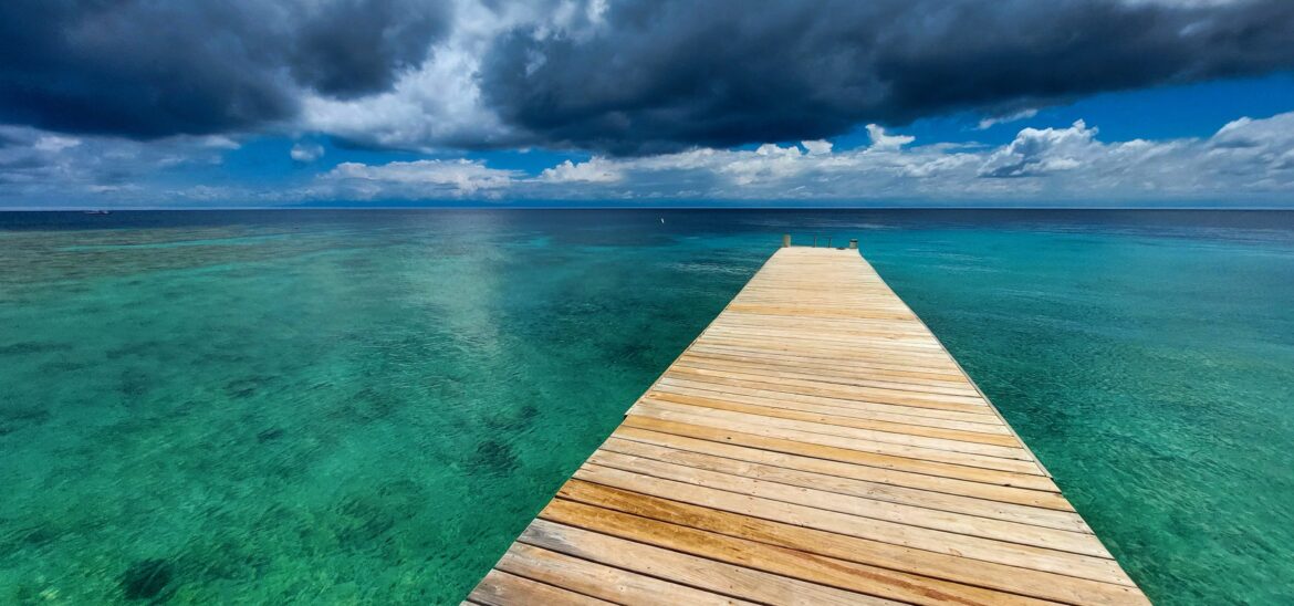 Spousta rybářských chatrčí na Roatánu má k dispozici jednoduché molo.
